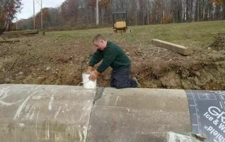 2、用沥青麻絮塞缝,在其表面涂上一层沥青,然后在接缝口一定宽度范围内用油毛毡裹住,再涂上一层沥青,所谓"两油两料",我们见到的公路涵管基本上是这样处理的。
